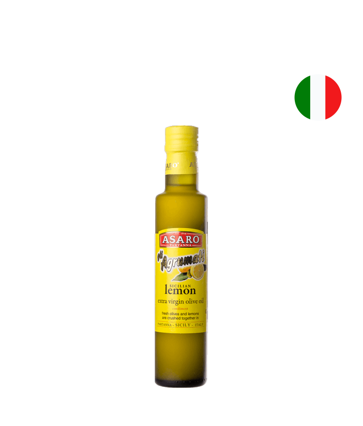 Produzidos na Sicília na Itália, azeitonas frescas e limões sicilianos são prensados em conjunto para produção deste azeite de oliva extra virgem. Uma forma saudável e deliciosa para saborear saladas, legumes, aves, peixes e até mesmo queijos. Acidez máxima de 0,3%.