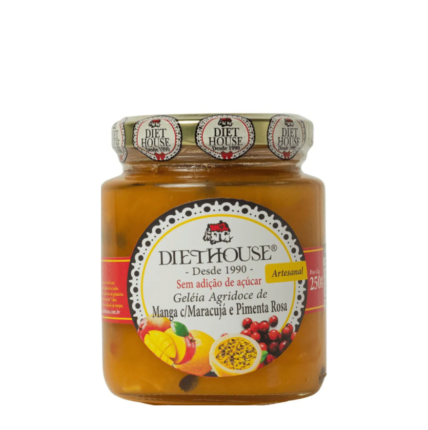 Geleia artesanal de manga, maracujá e pimenta rosa, sem adição de açúcar. Uma combinação tropical e sofisticada que une a doçura natural da manga, a acidez refrescante do maracujá e o toque levemente picante e aromático da pimenta rosa. Frutas frescas selecionadas e preparo cuidadoso, resulta em uma geleia equilibrada, saudável e irresistível. Ideal para acompanhar queijos, carnes, torradas ou criar harmonizações gourmet.
