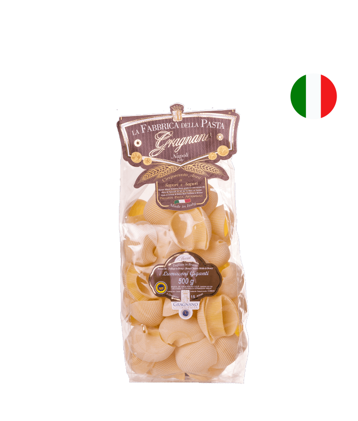 Massa em formato de Concha grande, um dos maiores formatos de massa aberta, aproximadamente do tamanho de uma bola de ping pong. Geralmente servido com recheio