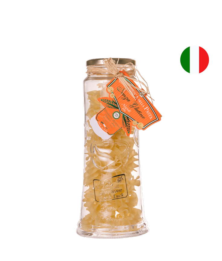 É a versão grande do Fusilli sem glúten em recipiente de vidro. Seu formato de saca rolha e sua textura rugosa permitem que o molho, tanto cremoso quanto mais fino, se fixem com maior facilidade.