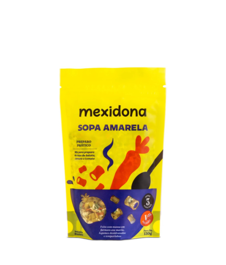 Você terá uma experiência completa com muito sabor e os benefícios de uma sopa nutritiva e saudável. A Sopa Amarela da Mexidona é feita com pedacinhos de legumes como tomate, cenoura e alho-poró, além do macarrãozinho funcional feito com farinha de banana verde, apenas ingredientes naturais, livre de adição de sal, glutamato (MSG free) e conservantes.