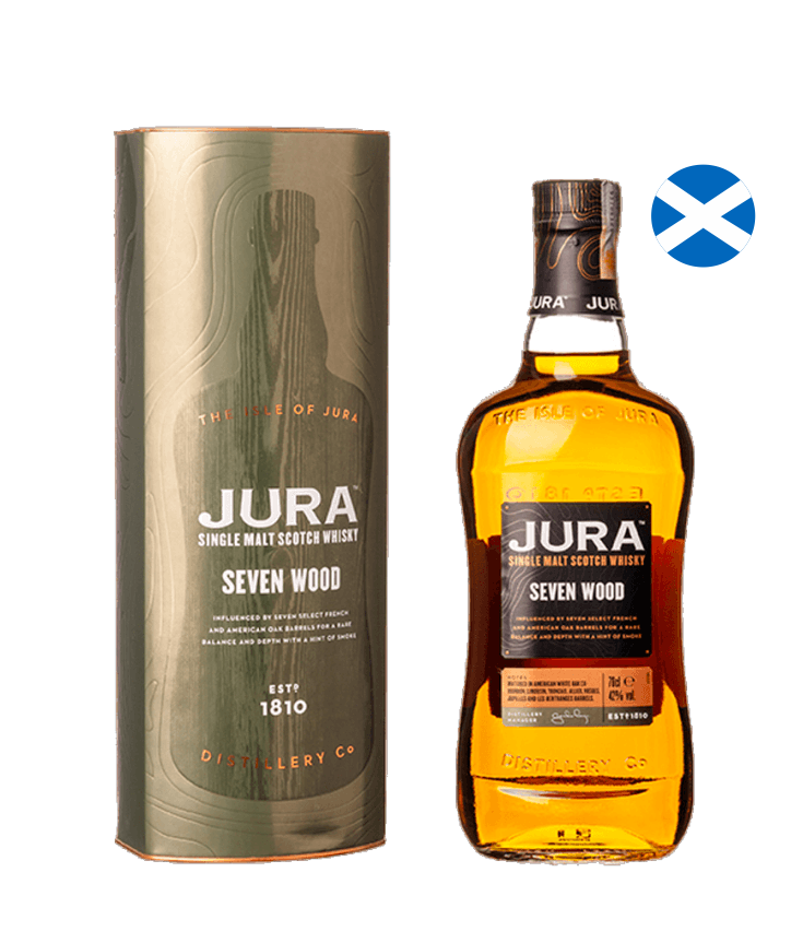 Como o próprio nome sugere, o Jura Seven Woodé é envelhecido em sete barris diferentes. A primeira etapa ocorre em barris de carvalho americano ex-bourbon. Em seguida, o whisky é finalizado em seis barris de carvalho francês diferentes: Vosges, Jupilles, Les Bertranges, Allier, Tronçais e Limousin. Sua destilaria está localizada na ilha isolada de Jura, que tem menos de mil habitantes, mas mais de cinco mil cervos selvagens. Nenhum desses cervos fala francês.